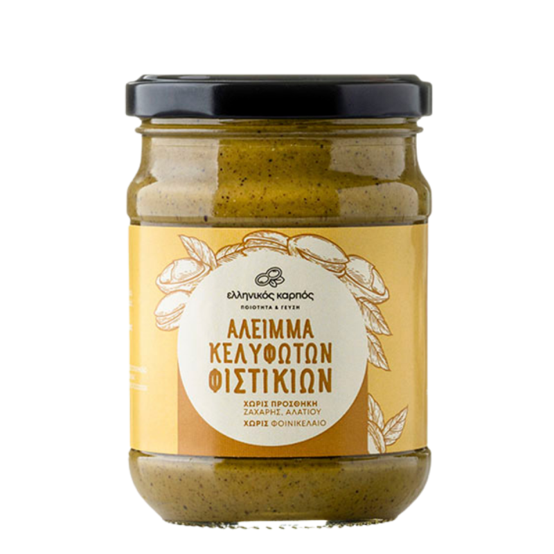 Το κελυφωτό φιστίκι από την εταιρία Ελληνικός Καρπός, είναι είναι ένα θρεπτικό και υγιεινό φαγητό το οποίο μπορεί να καταναλωθεί ως σνακ αλλά και να προστεθεί σε πολλές άλλες συνταγές, γλυκές αλλά και αλμυρές. Αλεσμένα ψημένα κελυφωτά φιστίκια, το βούτυρο κελυφωτού φιστικιού είναι ένα άλειμμα με υψηλή διατροφική αξία. Αποτελεί μια εξαιρετική επιλογή για όσους επιλέγουν μια διατροφή με υψηλή διατροφική αξία και χαμηλά λιπαρά. Είναι πραγματικά πολύ νόστιμο και μπορεί να χρησιμοποιηθεί σαν σνακ, αλλά και στη ζαχαροπλαστική. Ιδανικό και για vegan.