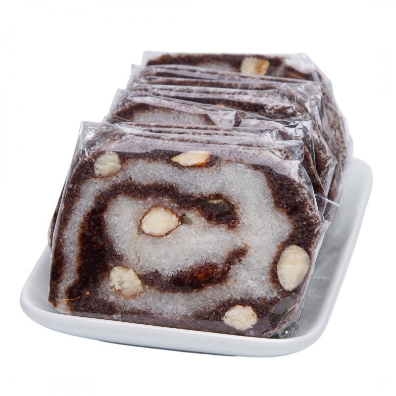 Λαχταριστές φέτες από ινδοκάρυδο με κακάο και με κομματάκια από αμύγδαλο. Πολύ το κατονομάζουν και ως κορμό. Το απόλυτο γλύκισμα για τους λάτρεις της καρύδας και μια ιδανική επιλογή για την περίοδο της νηστείας. Χωρίς συντηρητικά και χωρίς φοινικέλαιο. Η τιμή του κιλού περιέχει 28-30 τεμάχια.