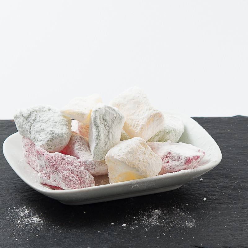 Κανείς δεν μπορεί να αντισταθεί στις ανάμικτες μπουκίτσες πασπαλισμένες με άχνη ζάχαρη. Λουκούμια φτιαγμένα με μεράκι και σεβασμό στην παράδοσηΞεχωρίζουν για την απαλή υφή, το διακριτικό άρωμα και την υπέροχη γεύση του. Η τιμή του κιλού περιέχει 30 τεμάχια.