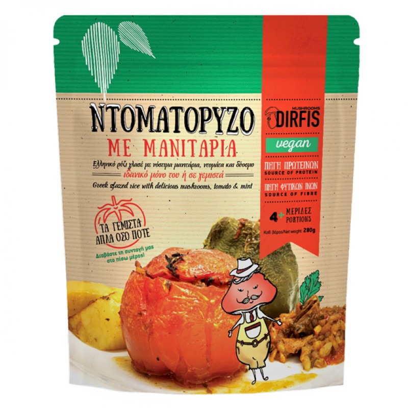 Ελληνικό ρύζι με λιαστή ντομάτα από την Εύβοια και πλούσιο μίγμα 10% αποξηραμένων μανιταριών σε συνδυασμό με θυμάρι και αρωματικά βότανα! Θα σας εντυπωσιάσει! Η συσκευασία βγάζει 4 μερίδες.