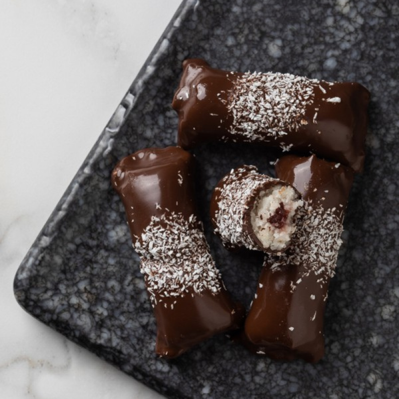 Σοκολατένιο πουράκια σε σχήμα ρολάκι με υπέροχη γέμιση ινδοκάρυδου και ζελέ βύσσινου. Ένα γλυκάκι πειρασμός μοναδικό και απολαυστικό. Η εντυπωσιακή του εμφάνιση και οι διαφορετικές λαχταριστές υφές του θα σας ενθουσιάσουν. 25 τεμάχια στην τιμή του κιλού. Ιδανική επιλογή για κέρασμα σε γιορτές και γενέθλια.